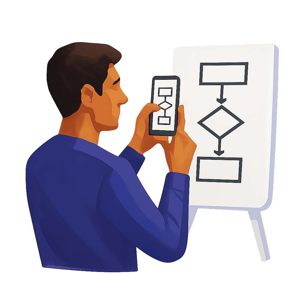 One photo is enough. Comak detects every line, arrow, and sticky note.